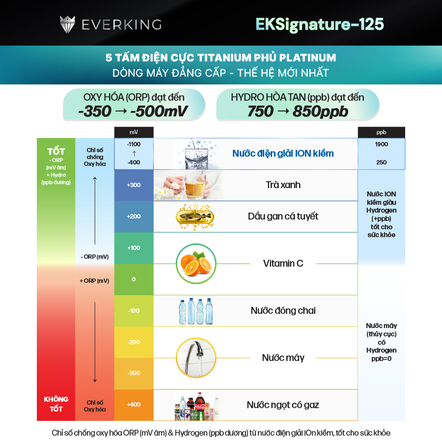 Mua tại TiktokEVERKING EKSignature-125 được trang bị công nghệ tiên tiến, với hàng loạt chức năng tiện ích hơn hẳn các dòng máy truyền thống trên thị trường, tạo ra được nhiều mức pH nhất so với các dòng cùng tấm điện cực, đáp ứng mọi nhu cầu sử dụng nước và cho trải nghiệm công nghệ vượt bậc, nâng cao chất lượng sống. Tính năng thông minh – Tiện ích nổi bật vượt trội của EVERKING EKSignature-125