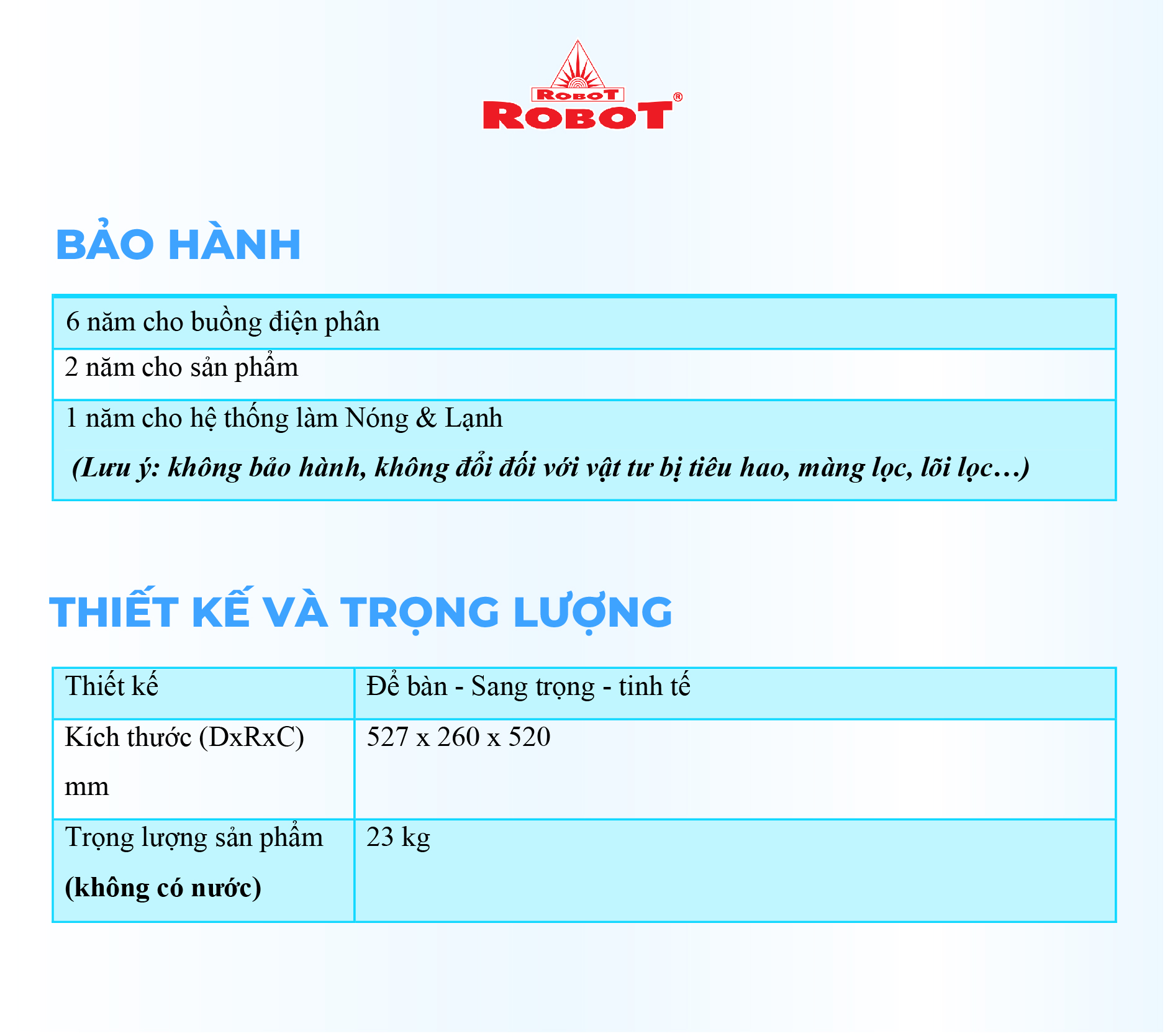 - Với mong muốn nhiều gia đình Việt có thể sử dụng nước điện giải iON kiềm với chi phí hợp lý để bảo vệ sức khỏe, sắc đẹp & nâng cao chất lượng cuộc sống, ROBOT mang đến sản phẩm “Chất lượng Quốc tế - Giá thành Việt Nam”, phù hợp với mức sống của nhiều người. Tiết kiệm cho người tiêu dùng đến hơn một nửa chí phí so với máy nhập khẩu chỉ từ 30 – 50%, nhưng sở hữu nhiều ưu điểm, tính năng vượt trội, chất lượng cao.
