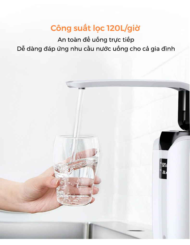 - CƠ CHẾ LỌC KHÉP KÍN AN TOÀN VÀ VỆ SINH Máy lọc không có bình chứa nước thải, đảm bảo cho nguồn nước không bị đong rong rêu hay vi khuẩn tích tụ sau thời gian dài sử dụng mà không được vệ sinh thường xuyên, tránh gây ảnh hưởng đến sức khỏe của người tiêu dùng.