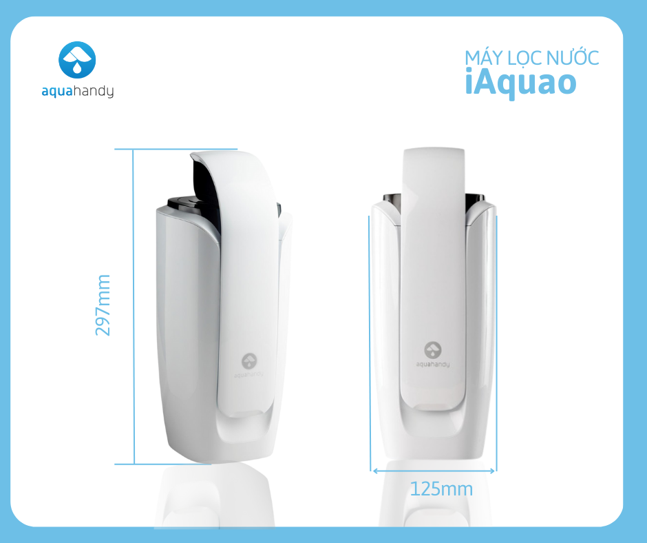 - Thiết kế lắp trực tiếp tại vòi nhỏ gọn, sang trọng cho gia đình hiện đại - Kiểm soát chất lượng nước và thông báo qua màn hình khi cần thay tiện lợi, tối ưu chi phí - Hệ thống lọc 5 bước tích hợp trong 2 lõi lọc (UF và GAC) loại bỏ tạp chất độc hại theo tiêu chuẩn quốc tế - Lõi lọc sợi rỗng UF công nghệ Nhật Bản đem lại nguồn nước sạch, tinh khiết - Chế độ chống bỏng nước nóng an toàn cho gia đình có trẻ em - Lõi lọc kháng khuẩn chống lại tái nhiễm khuẩn ngay trong bình chứa nước - Tên sản phẩm: Máy lọc nước iAquao Cơ thể bạn cần khoáng chất: Máy lọc nước iAquao oại bỏ 99,9% vi khuẩn, kim loại nặng, loại bỏ hoàn toàn các chất độc hại cho cơ thể như E.coli, Coliforms, Chì ... Giữ lại khoáng chất trong nước, giúp cân bằng độ pH. - Tại sao nên chọn iAquao - Thông số kỹ thuật - Sản phẩm: Máy lọc nước iAquao - Thiết bị lọc nước thông minh iAquao - Nhãn hiệu: AquaHandy - Công suất lọc: 180L/H ============================== Tất cả sản phẩm tại AquaHandy đều đạt các chứng nhận đảm bảo sức khỏe người sử dụng từ cơ quan chức năng. Tôn chỉ của chúng tôi là mang tới sức khỏe cho mọi gia đình tại Việt Nam thông qua nguồn nước khoáng tinh thể. Sản phẩm máy lọc nước iAquao chính hãng AquaHandy được bảo hành 24 tháng trên toàn quốc.