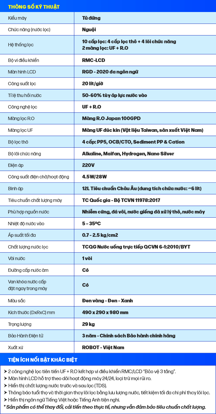 Máy Lọc Nước Nóng Lạnh ROBOT Duy Nhất 2 Màng Lọc UF + R O + RMC LCD