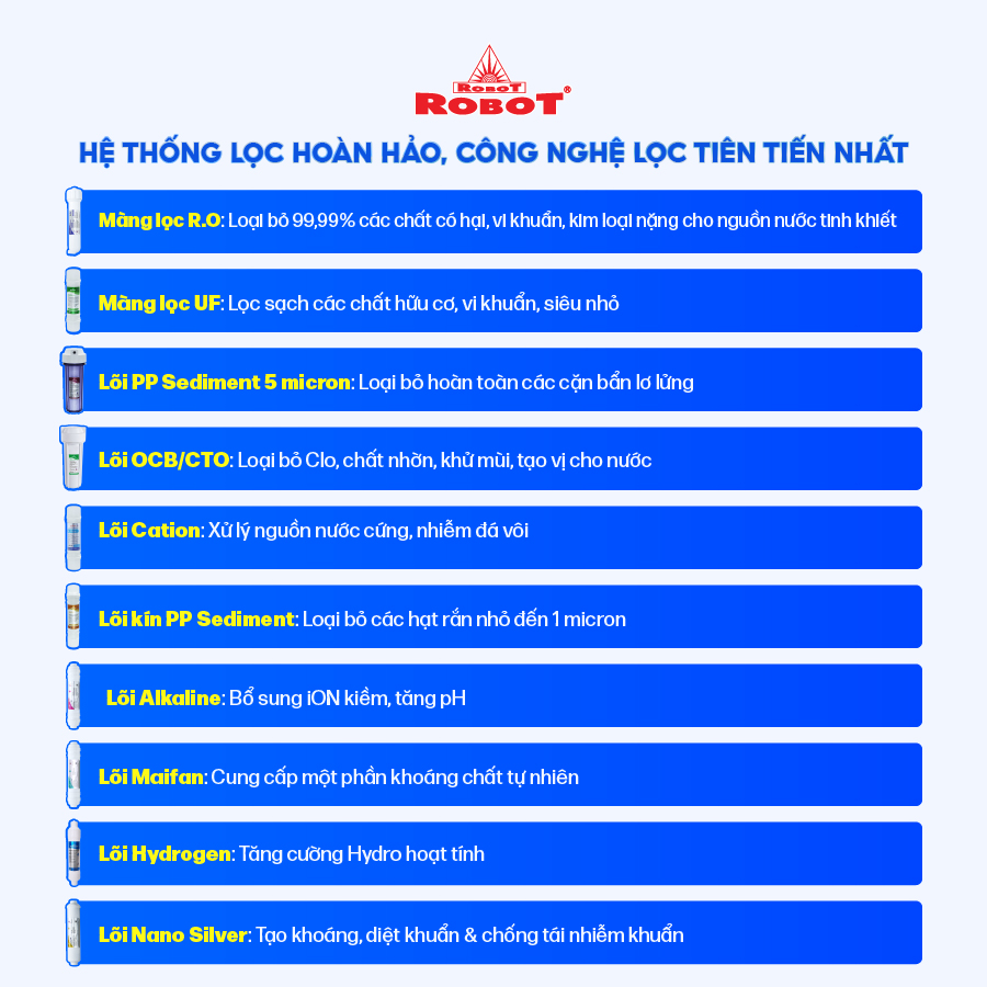 Máy lọc nước Robot - Tích hợp công nghệ lọc tiên tiến R.O + UF + Hydrogen