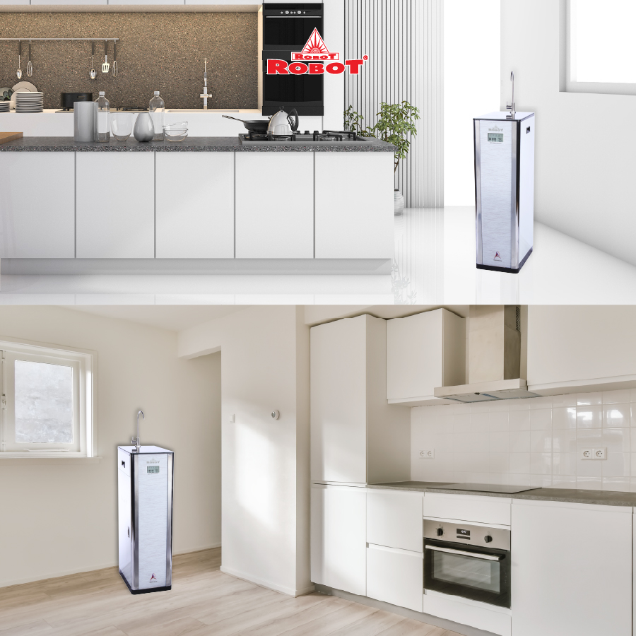 • Kích thước máy nhỏ gọn tối ưu, không chiếm diện tích, phù hợp mọi không gian lắp đặt.   Máy lọc nước ROBOT Thế hệ mới có kiểu dáng hiện đại, tinh tế, phù hợp với nhiều không gian và phong cách nội thất khác nhau