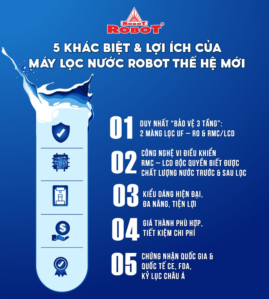 Máy Lọc Nước Nóng Lạnh ROBOT Thế Hệ Mới - Duy Nhất 2 Màng Lọc UF + R.O + RMC-LCD - Bảo Vệ 3 Tầng