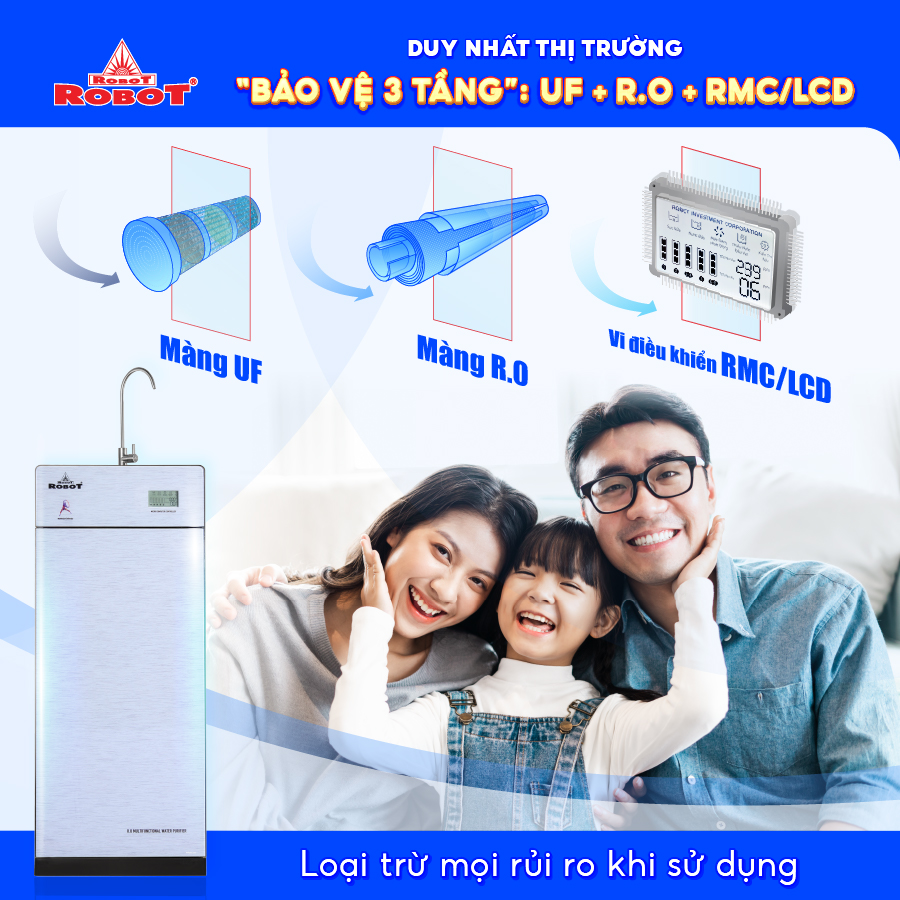 Máy lọc nước “Bảo vệ 3 tầng” UF + RO - RMC/LCD duy nhất thị trường