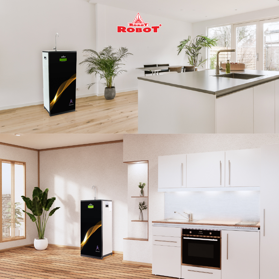 • Kích thước máy nhỏ gọn tối ưu, không chiếm diện tích, phù hợp mọi không gian lắp đặt.   Máy lọc nước ROBOT Thế hệ mới có kiểu dáng hiện đại, tinh tế, phù hợp với nhiều không gian và phong cách nội thất khác nhau