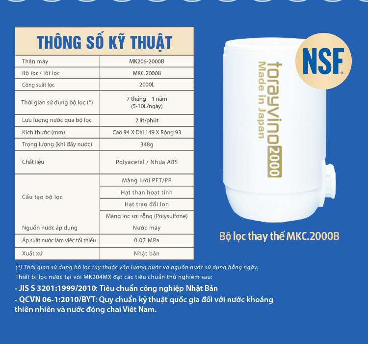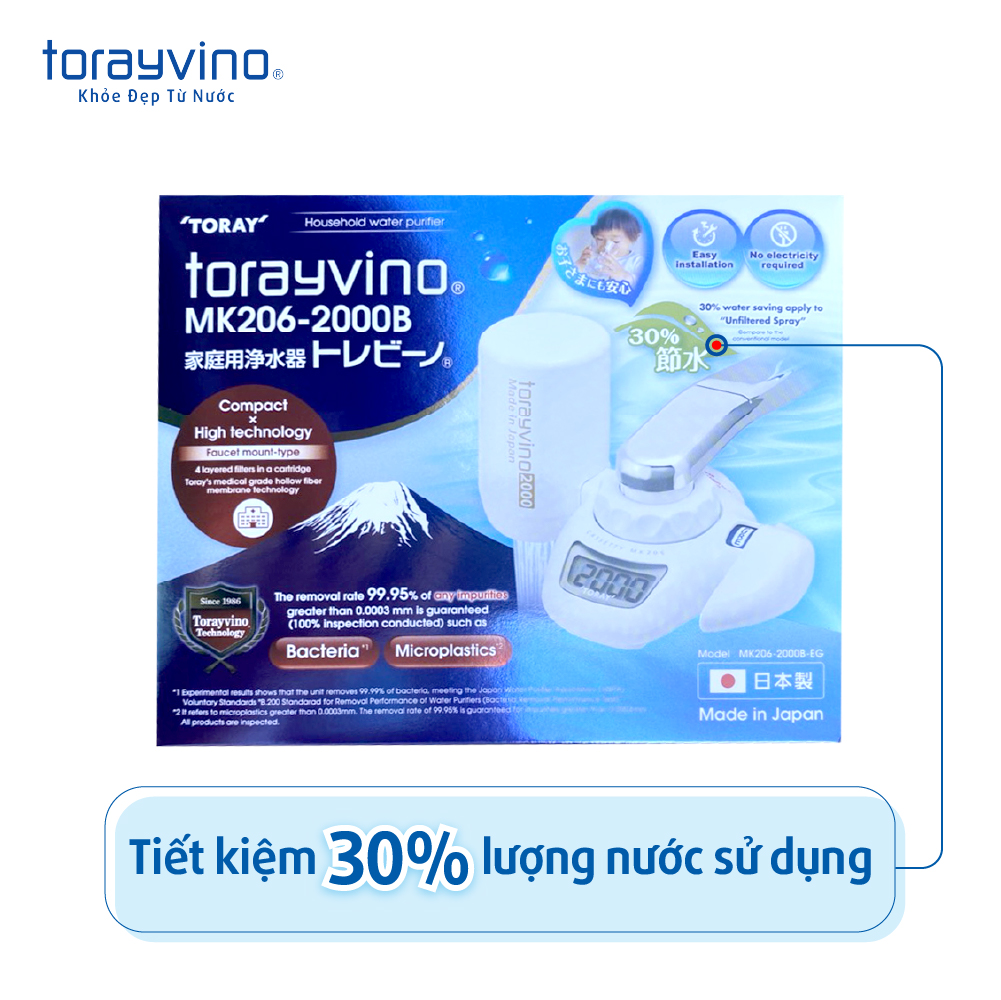 Thiết bị lọc nước tại vòi Torayvino MK206-2000B công suất 2000L - Chính hãng Nhật Bản với công nghệ lọc tiên tiến có thể loại bỏ được 13 loại tạp chất và 99,99% vi khuẩn có hại trong nước máy nhưng vẫn giữ nguyên được khoáng chất cần thiết cho nhu cầu uống trực tiếp và sử dụng nước sạch hàng ngày của gia đình.