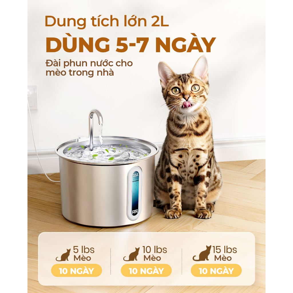 - Tất cả sản phẩm của ONEISALL đều được đảm bảo đóng gói nguyên seal, chắc chắn đến tay khách hàng Điều kiện bảo hành: Vui lòng chat với shop và cung cấp imei ngay khi nhận hàng để Shop kích hoạt bảo hành và giữ lại HỘP của sản phẩm khi cần bảo hành! ** Lưu ý: Vui lòng QUAY VIDEO khui kiện hàng trước khi mở để đảm bảo SHOP giao đúng và đủ đơn hàng. Cảm ơn quý khách đã tin tưởng ủng hộ! ĐÔI NÉT VỀ ONEISALL: ONEISALL INC được thành lập vào năm 2016 với sứ mệnh mang đến cho mọi thú cưng cuộc sống và sức khỏe tốt hơn. Đây là thương hiệu toàn cầu về sản phẩm dành cho thú cưng tích hợp phát triển sản phẩm, bán hàng và dịch vụ. Chúng tôi cam kết cung cấp bộ dụng cụ chải lông cho thú cưng để giúp thú cưng thoải mái hơn, biến việc cạo lông cho thú cưng trở thành một hoạt động thú vị và khiến thú cưng và chủ trở nên gần gũi hơn. ONEISALL đã trở thành TOP 1 trên sàn TMĐT tại Mỹ và Đức năm 2019 với hiệu suất tuyệt vời và trải nghiệm thân thiện với thú cưng. Nó đã giữ được thứ hạng dẫn đầu trong hơn 60 tháng và sẽ còn tiến xa hơn nữa trong tương lai. Thương hiệu ONEISALL đã có 2 triệu khách hàng tại 15 quốc gia và hiện nhận được 150.000 đánh giá tích cực trên sàn. Kể từ năm 2021, doanh thu của Năm vượt quá 300 triệu RMB (khoảng 43,8 triệu Đô la Mỹ) và nhanh chóng phát triển thành một trong những thương hiệu thú cưng hàng đầu và quốc tế. ĐẶC ĐIỂM NỔI BẬT Máy được làm từ chất liệu inox 316 không gỉ, có khả năng chịu nhiệt tốt, không đóng cặn, không hấp thụ vi khuẩn và hóa chất, an toàn cho thú cưng. Dung tích bình chứa 2L, thoải mái cho thú cưng sử dụng nhiều ngày liền. Hệ thống lọc ba lớp giữ cho nước luôn sạch sẽ và không có mùi hôi, bảo vệ sức khỏe cho thú cưng. Thiết kế cho phép nhìn thấy mực nước bên trong, nhanh chóng nhận biết và làm đầy nước khi sắp hết. Độ ồn thấp dưới 25dB, không làm thú cưng của bạn bị giật mình. Thông số kỹ thuật: Chất liệu: Thép không gỉ 316 Cáp USB: 5V 1A Tiếng ồn: <20db Dung tích: 2L/67oz Kích thước sản phẩm: 181811.6cm Bộ lọc: 3 lớp Chứng nhận: CE /FCC / RHoS Hỗ trợ khách hàng Hỗ trợ tư vấn qua khung chat với Shop trên app Tiki Thời gian làm việc: 8h - 12h00 và 13h30 - 17h00 (Từ thứ 2 đến thứ 6, trừ các ngày Lễ/Tết). Vui lòng chat với Shop qua app Tiki khi cần hỗ trợ nhé! Cảm ơn quý khách đã tin tưởng và ủng hộ!
