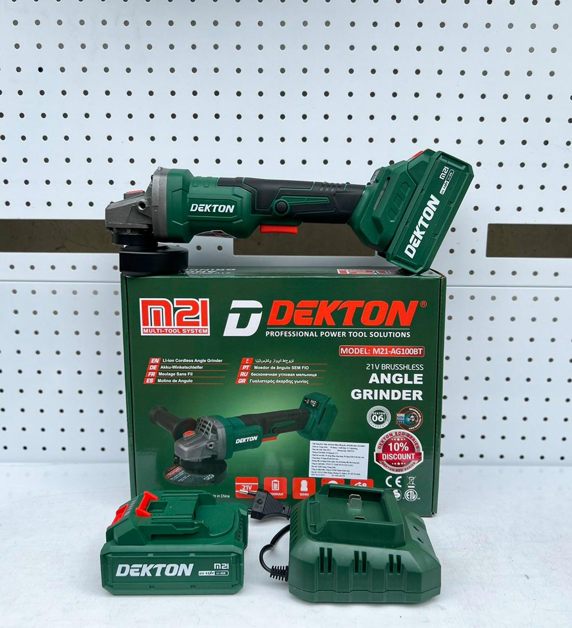✨MÁY MÀI GÓC SỬ DỤNG PIN 21V (CHÂN PIN PHỔ THÔNG) 100mm DEKTON M21-AG100BTV - HÀNG CHÍNH HÃNG