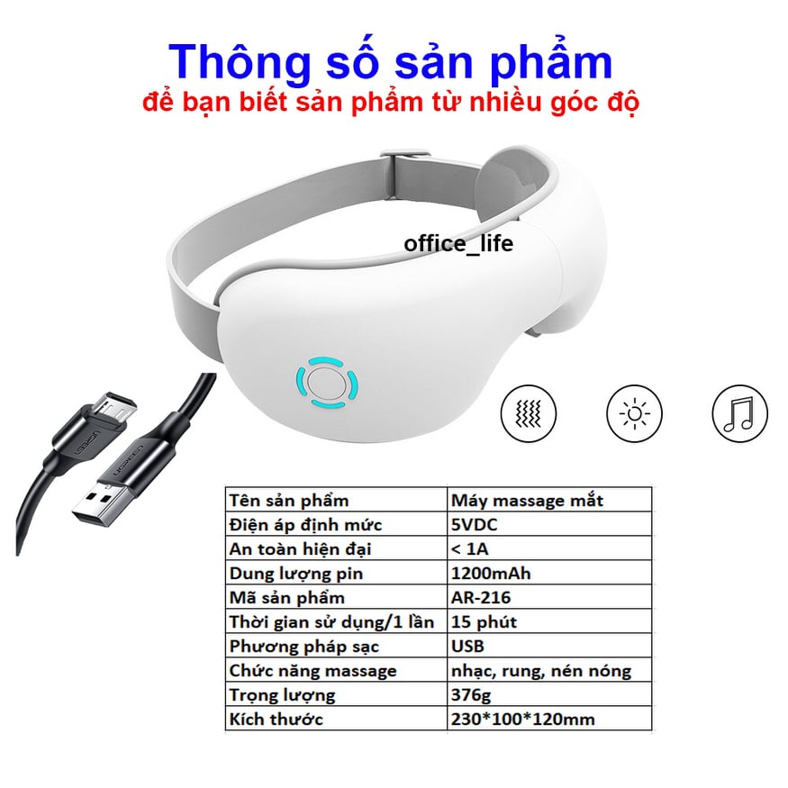 Thông số kĩ thuật Máy Massage mắt thông minh.