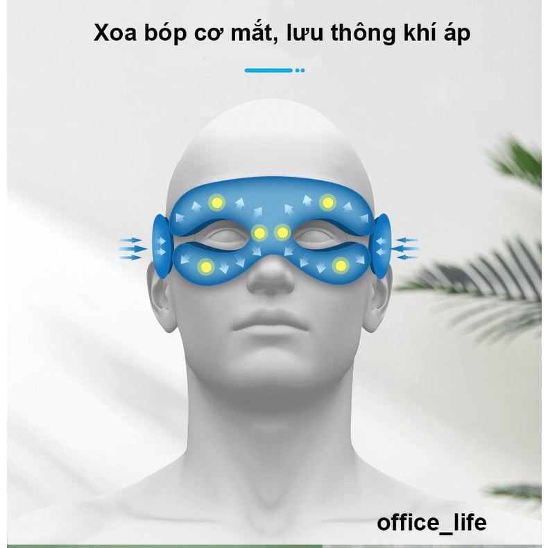 Máy massage mắt giúp giảm đau nhức mắt. Thông qua việc làm ấm các vùng xung quanh mắt, massage bọng mắt và tất cả các huyệt đạo xung quanh mắt, máy massage mắt sẽ giúp làm tăng khả năng cung cấp oxy, điều chỉnh chức năng của cơ lông mi, tăng tuần hoàn máu cho mắt.