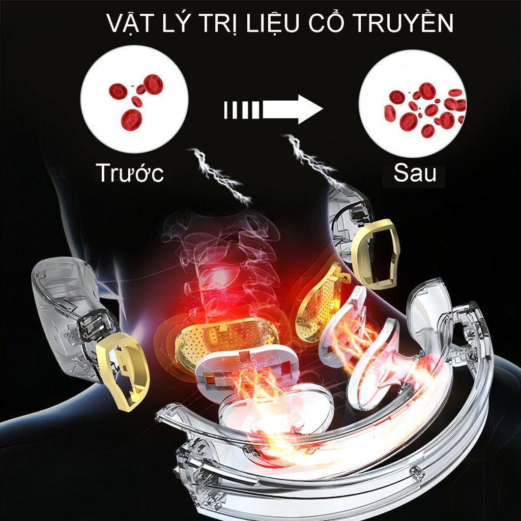 VÀ GIẢI PHÁP CHO VẤN ĐỀ ĐÓ: MÁY MASSAGE (mát xa) cổ 5D thế hệ mới: Chỉ với 15 – 30 phút mỗi ngày, hãy để MÁY MASSAGE CỔ 5D giúp bạn thư giãn và thoải mái hơn: Giảm đau cơ: nhờ tạo ra các cơn co giãn cơ nhẹ giúp cơ bắp được xoa bóp nhẹ nhàng. Giúp máu lưu thông tốt hơn: nhờ tạo ra sự co giãn nhịp nhàng của cơ tim, giúp cho hoạt động bơm của tim được tốt hơn. Điều hòa giấc ngủ ngon và sâu hơn, ăn uống ngon miệng. Ngăn chặn tín hiệu đau: Khi dòng điện tần số thấp tới vùng bị đau, nó tác động vào cơ chế truyền đau, làm giảm khả năng truyền đau tới não Kích thích lưu thông khí huyết, kích thích huyệt đạo, giải tỏa căng thẳng, stress hiệu quả. liệu đúng phương pháp bằng máy massage xung điện có thể cải thiện tuần hoàn và ngặn chặn các cơ đau của cơ thể. NGUYÊN LÝ HOẠT ĐỘNG: Khác với các loại massage cầm tay, Máy Massage Cổ 5D không sử dụng con lăn mà hoạt động dựa trên nguyên lý xung điện từ trường, Sử dụng các liệu pháp điện tần số thấp, liệu pháp từ tính, liệu pháp điều đa kênh đồng bộ “trinity” tạo ra một trường năng lượng tổng hợp tác động sâu vào các mô, tủy xương một cách hiệu quả. Kích thích các dây thần kinh. CÔNG DỤNG: Giúp thúc đẩy lưu thông và tuần hoàn máu, thư giãn các cơ tại đốt sống cổ, chống viêm, sưng tấy, giảm đau, loại bỏ mệt mỏi. Hỗ trợ điều các chứng đau mỏi cổ, nhức đầu, vai, chóng mặt, hoa mắăng cường lưu thông tuần hoàn máu, thư giãn cơ. Đẩy lùi các chứng nhức, đau mỏi. Ai nên sử dụng máy massage xung điện ? Máy massage xung điện giúp cải thiện tuần hoàn máu, giảm đau và tăng khả năng cử động cho bệnh nhân bị viêm khớp ; tránh teo cơ ở người già và các bệnh nhân bị liệt ; giúp phục hồi chấn thương thể thao và làm hết mệt mỏi.Nhân viên văn phòng đau mỏi vai, gáy do ngồi lâu. Do vậy, những đối tượng được các chuyên gia y tế khuyên rằng nên có một chiếc máy massage xung điện tại nhà đó là : Bệnh nhân viêm khớp Bệnh nhân nằm lâu ngày Nhân viên văn phòng đau mỏi vai, gáy do ngồi quá lâu Người hay chơi thể thao