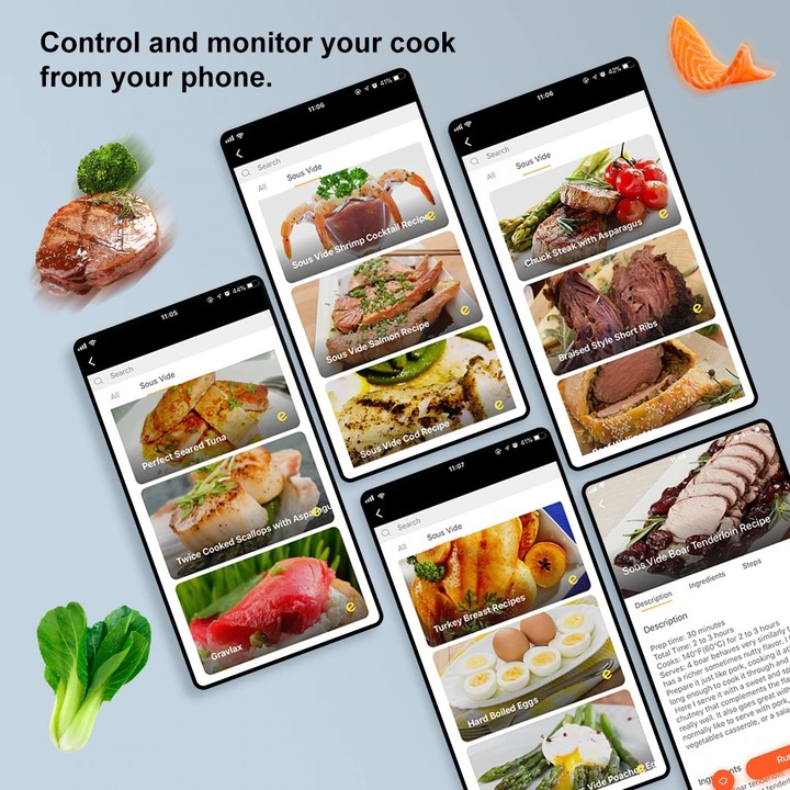 – Chỉ cần gắn nồi vào bất kỳ nồi nào, thêm nước, cho các nguyên liệu của bạn vào túi hút chân không. Bắt đầu nấu chỉ với một nút bấm trên thiết bị. Chế độ hẹn giờ và kiểm soát nhiệt độ của nồi Sous vide cho phép bạn thư giãn trong khi nấu ăn, các phần tiếp xúc nước bằng thép không gỉ có thể tháo rời của bếp sous vide an toàn và vệ sinh dễ dàng, thiết bị nhà bếp này dễ dàng vệ sinh và bảo trì.