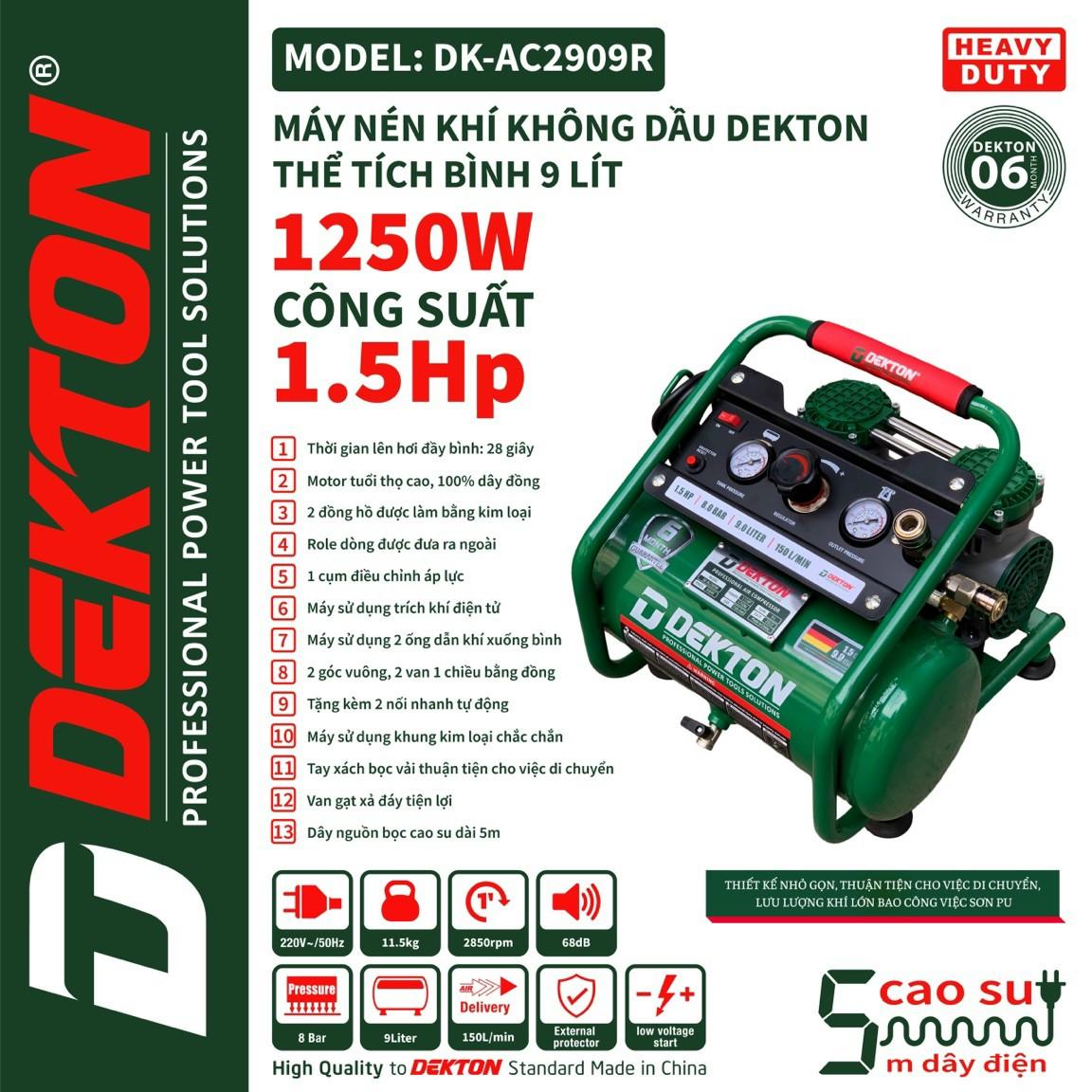 ✨MÁY NÉN KHÍ KHÔNG DẦU 9L 1250W DEKTON DK-AC2909R - HÀNG CHÍNH HÃNG