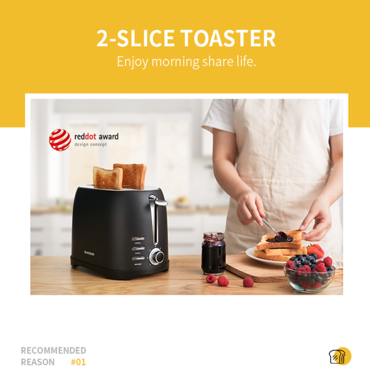 Máy nướng bánh mì Shardor TS515B-ELF công suất 800W trang bị 7 chế độ điều chỉnh tiện lợi Kiểu dáng hiện đại, sang trọng - Máy nướng bánh mì Shardor TS515B-ELF mang kiểu dáng hiện đại,