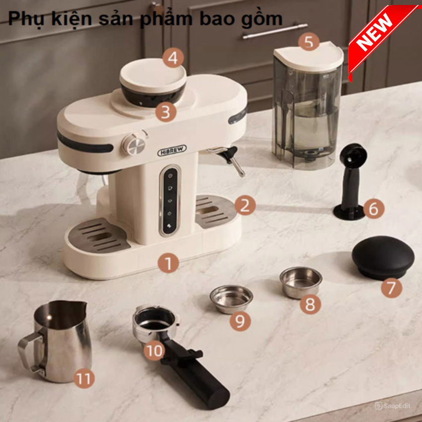 ✨Máy pha cà phê bán tự động 3 trong 1 tích hợp xay cà phê 15 chế độ thương hiệu Mỹ cao cấp HiBREW H14 - Hàng Nhập Khẩu