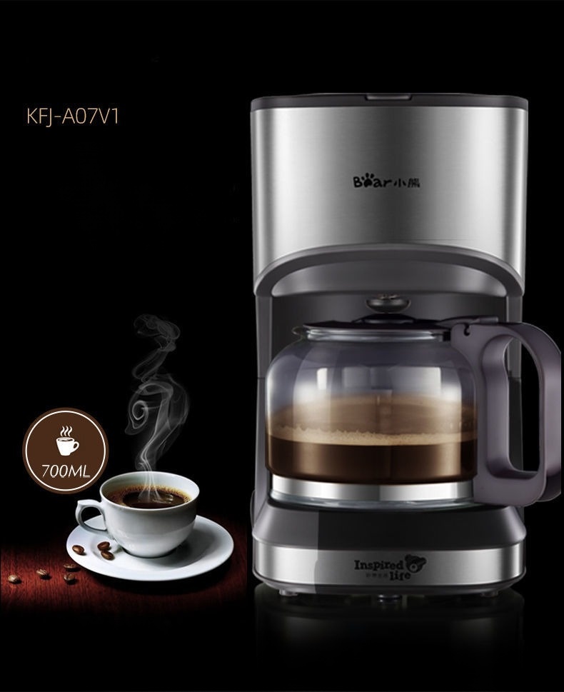 Máy pha cafe gia đình KFJ A07V1 BEAR, máy pha cafe mini, pha trà dung tích 700ml công suất 550W, bib