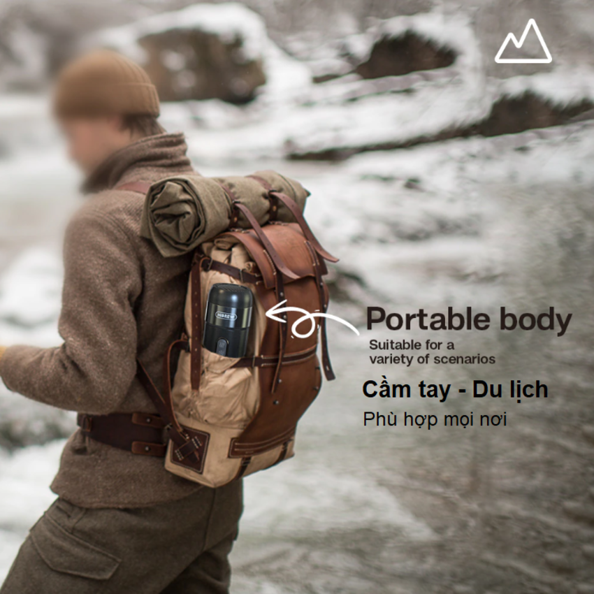 - Máy pha cà phê Mini Espresso cầm tay sở hữu thiết kế nhỏ gọn cùng cơ chế vận hành đơn giản, các bạn có thể mang theo khi đi leo núi, cắm trại hay đi du lịch cùng gia đình.