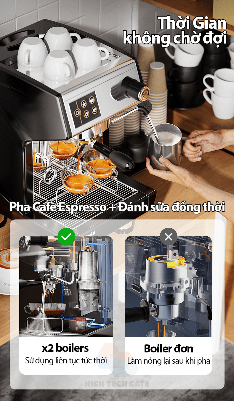 - Máy pha cafe Gemilai CRM3200D sở hữu 2 boilers độc lập, chính vì thể có thể sử dụng đánh bọt sữa và pha cà phê espresso cùng lúc rất tiện lợi. Chức năng này rất được các nhà kinh doanh đánh giá cao, và đặc biệt là đánh bại hoàn toàn các dòng máy cùng phân khúc không thể làm được điều này.