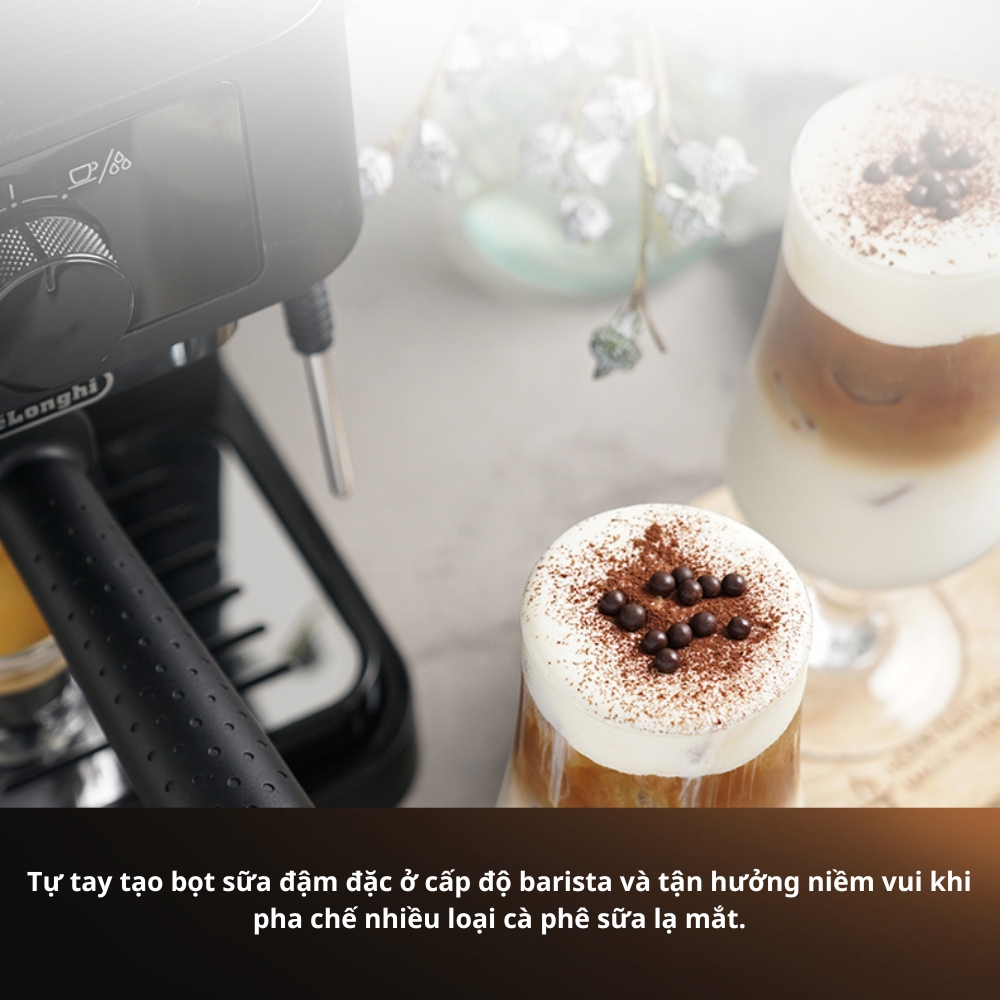- Áp suất 15 bar tạo ra một ly Espresso với hương thơm đậm đà và lớp kem màu hạt ở trên.
