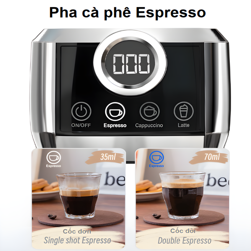 Máy pha cà phê Espresso bán tự động 3 trong 1, tự động pha