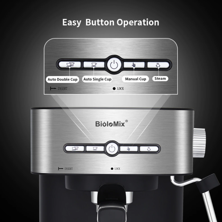 Máy pha cà phê Espresso BioloMix CM6866 BioloMix là Thương hiệu đã được Đăng ký tại Hoa Kỳ và Liên minh Châu Âu, những người luôn tận tâm mang đến cho bạn những thiết bị nhà bếp tốt nhất cho sức khỏe. Sản phẩm Biolomix giúp sức khỏe trở nên dễ dàng. Các sản phẩm được thiết kế và phát triển dựa trên giá trị cốt lõi là cung cấp giá trị và chất lượng vượt trội, đồng thời mang lại lợi ích sức khỏe thực sự. Là dòng máy pha cà phê đa năng phù hợp sử dụng cho các cá nhân, gia đình và văn phòng có thói quen uống cà phê hàng ngày. Vì vậy, Máy pha cà phê Espresso BioloMix CM6866 chính là sự lựa chọn hoàn hảo trong trường hợp này Thiết kế nhỏ gọn, hiện đại