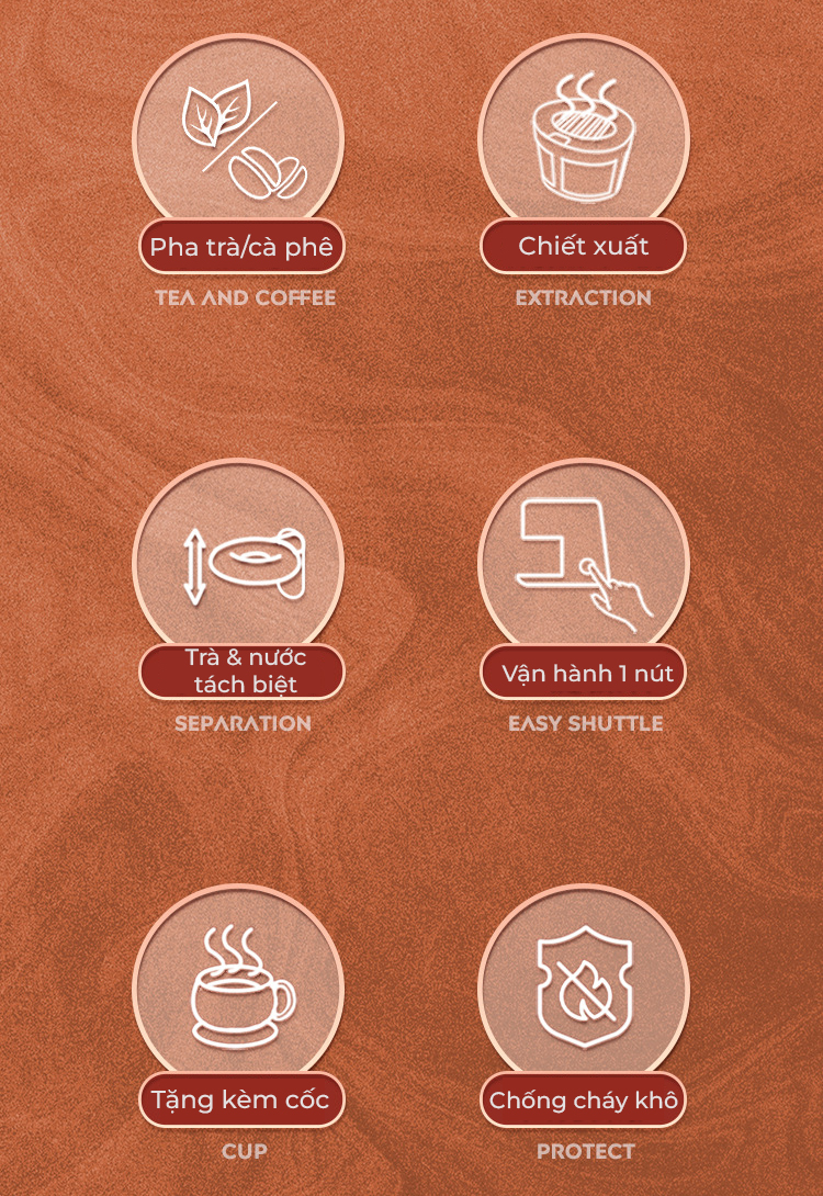 Chế độ sắc tự động; Độ sôi và độ tràn nước đạt tiêu chuẩn; Có chuông báo reo khi nấu xong; Gốm sứ Bát Tràng cao cấp Việt Nam an toàn cho sức khỏe; Mâm nhiệt tráng men Ceramic chống dính cao cấp, an toàn cho sức khỏe; Sản xuất theo Quy chuẩn kỹ thuật quốc gia QCVN 4: 2009/BHCN; Công suất: 450 W Sản xuất tại: Việt Nam;