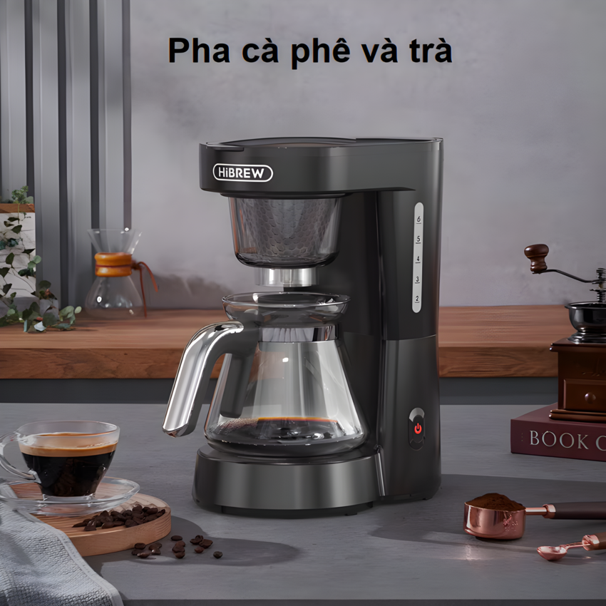 ✨Máy pha cà phê, pha trà tự động Drip Thương hiệu Mỹ cao cấp HiBREW H12, Công suất 700W, Tối đa 6 ly - HÀNG NHẬP KHẨU