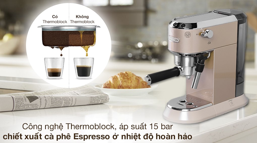 Công nghệ thermoblock giúp gia nhiệt chuẩn và làm nở cafe trước khi chiết xuất