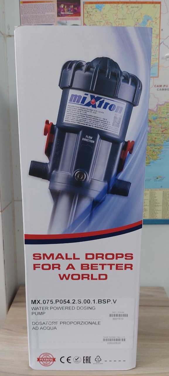 Mua tại TiktokBơm định lượng hóa chất hiệu Mixtron hay máy pha thuốc thú y tự động, thiết bị châm phân, được lắp đặt trực tiếp trên đường cấp nước, tự hút và pha trộn hóa chất theo tỉ lệ, cho phép người dùng định lượng chính xác và đồng nhất lưu chất.
