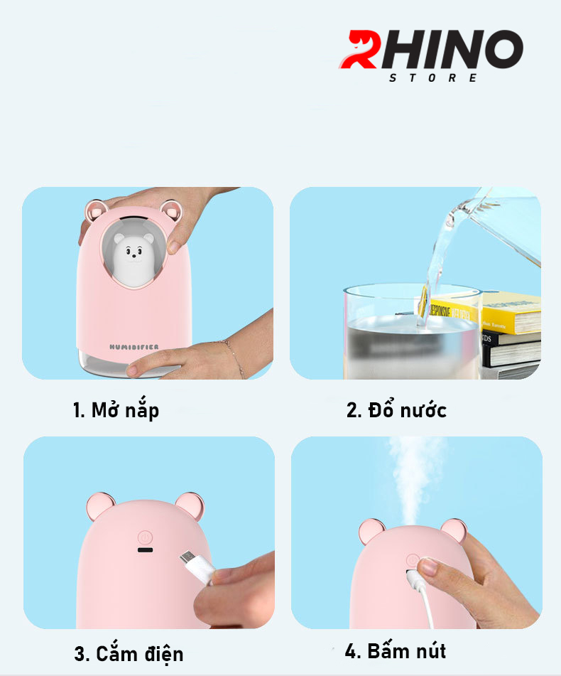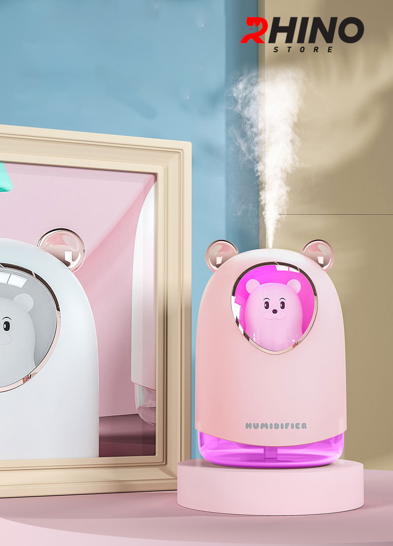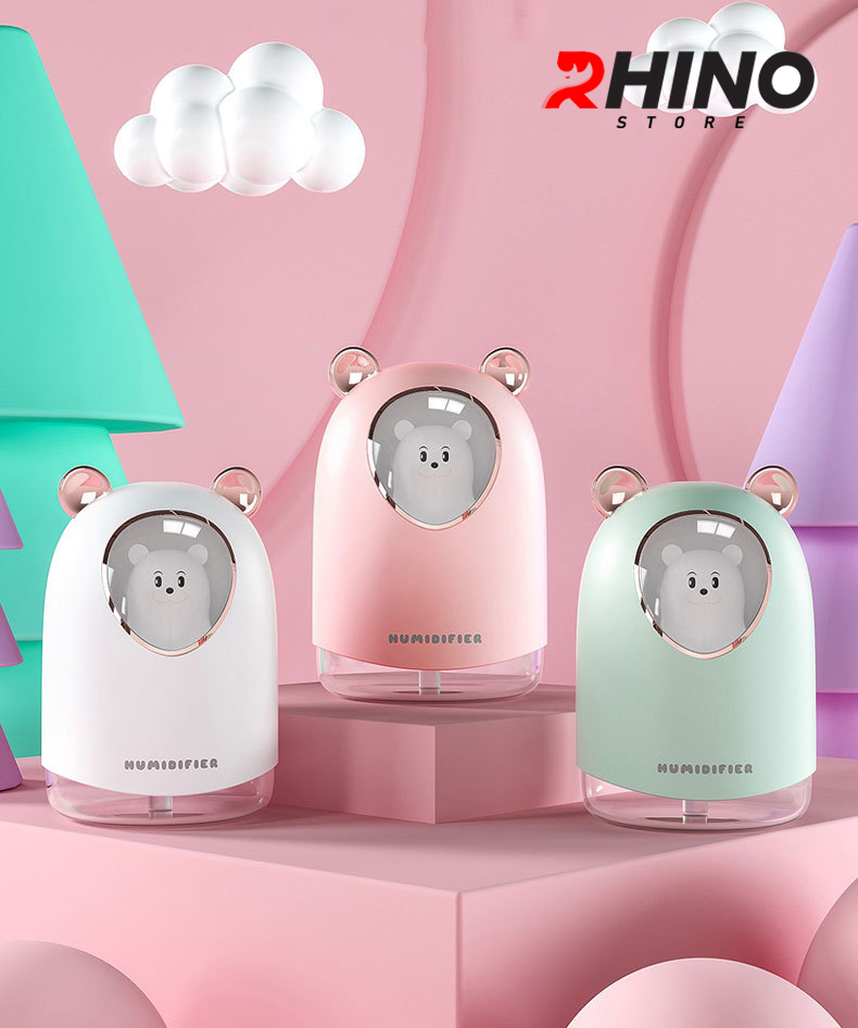 Mua tại TiktokMáy phun sương tạo ẩm hình con vật Rhino H904 dung tích 300ml, nhỏ gọn, không gây tiếng ồn, tích hợp đèn ngủ RGB nhiều màu, Hàng chính hãng Máy phun sương tạo ẩm là một thiết bị rất cần thiết đối với mọi gia đình trong thời tiết khô hanh, độ ẩm thấp với tác dụng chính là cấp thêm độ ẩm trong không khí. Từ đó giúp da không bị mất nước, khô nứt nẻ đặc biệt vùng môi và da mặt tạo ra môi trường sống thoải mái và dễ chịu nhất, không còn mặc cảm khi tiếp xúc với mọi người. Khi kết hợp với tinh dầu sẽ tạo ra bầu không khí dễ chịu, tránh nấm mốc và côn trùng ruồi muỗi (không nên lạm dụng và phải chọn đúng tinh dầu chất lượng tốt)