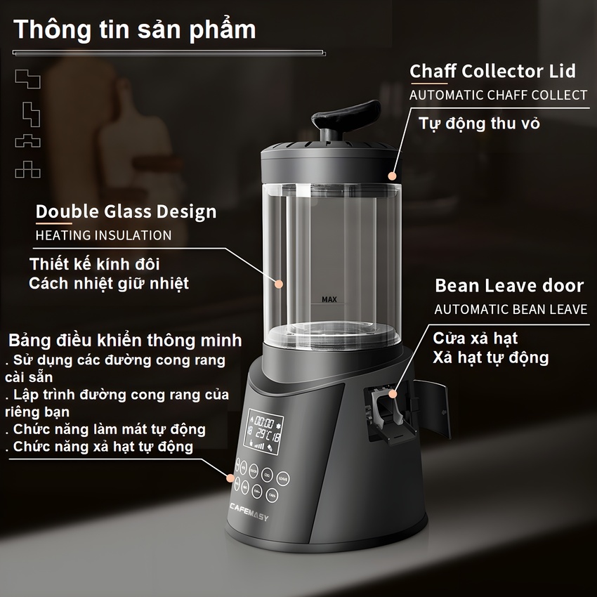 ✨Máy rang hạt cà phê công nghệ gia nhiệt không khí chuyên nghiệp. Thương hiệu Mỹ cao cấp Cafemasy SCR-306. Hàng chính hãng