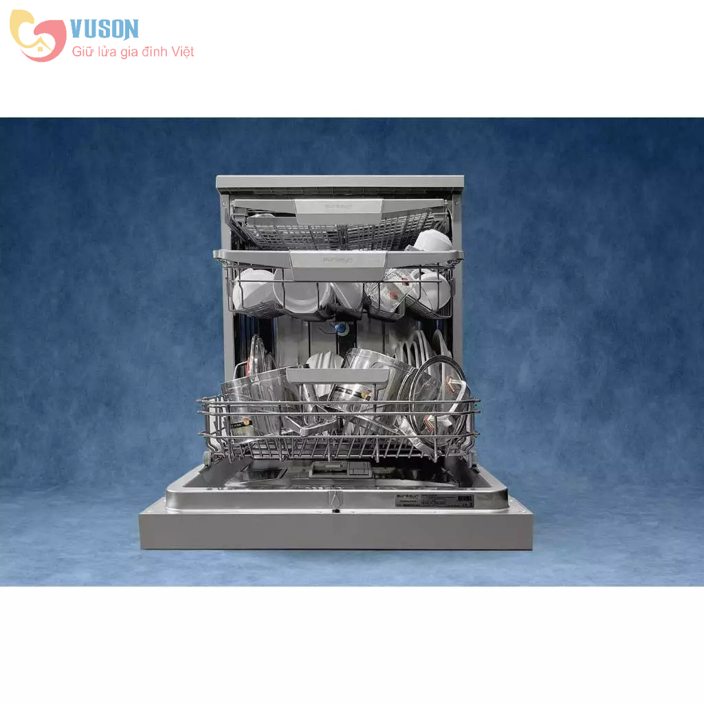 • Máy rửa chén độc lập • Thân inox màu đen cao cấp • 3 dàn rửa tiện lợi • Sức chứa 17 bộ đồ ăn Châu Âu • 8 Chương trình rửa tích hợp