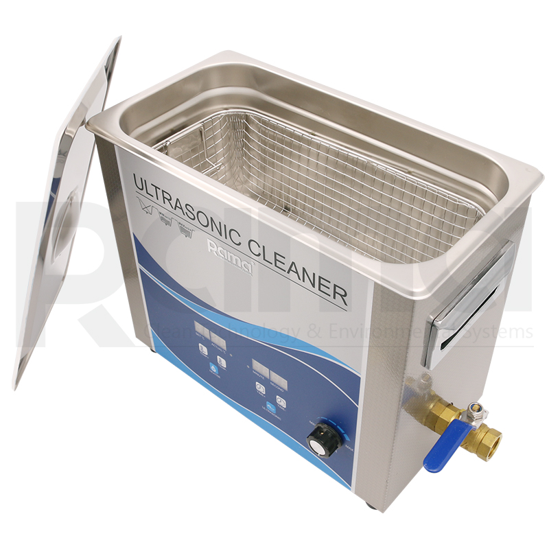 Bể rửa siêu âm Rama RS6.5L có công suất 6.5 lít, tần số sóng siêu âm 40kHz, phù hợp để làm sạch linh kiện điện tử, dụng cụ y tế, đồng hồ, kính mắt, …