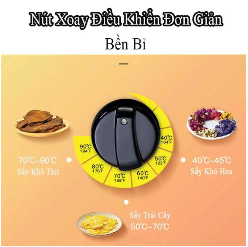 Loại máy: Máy sấy gia đình Công suất: 700W Số khay sấy: 6 khay Kích thước khay sấy: 30 x 28 cm Chất liệu khay: Inox 304 Nhiệt độ sấy: 35 - 85°C Chức năng: