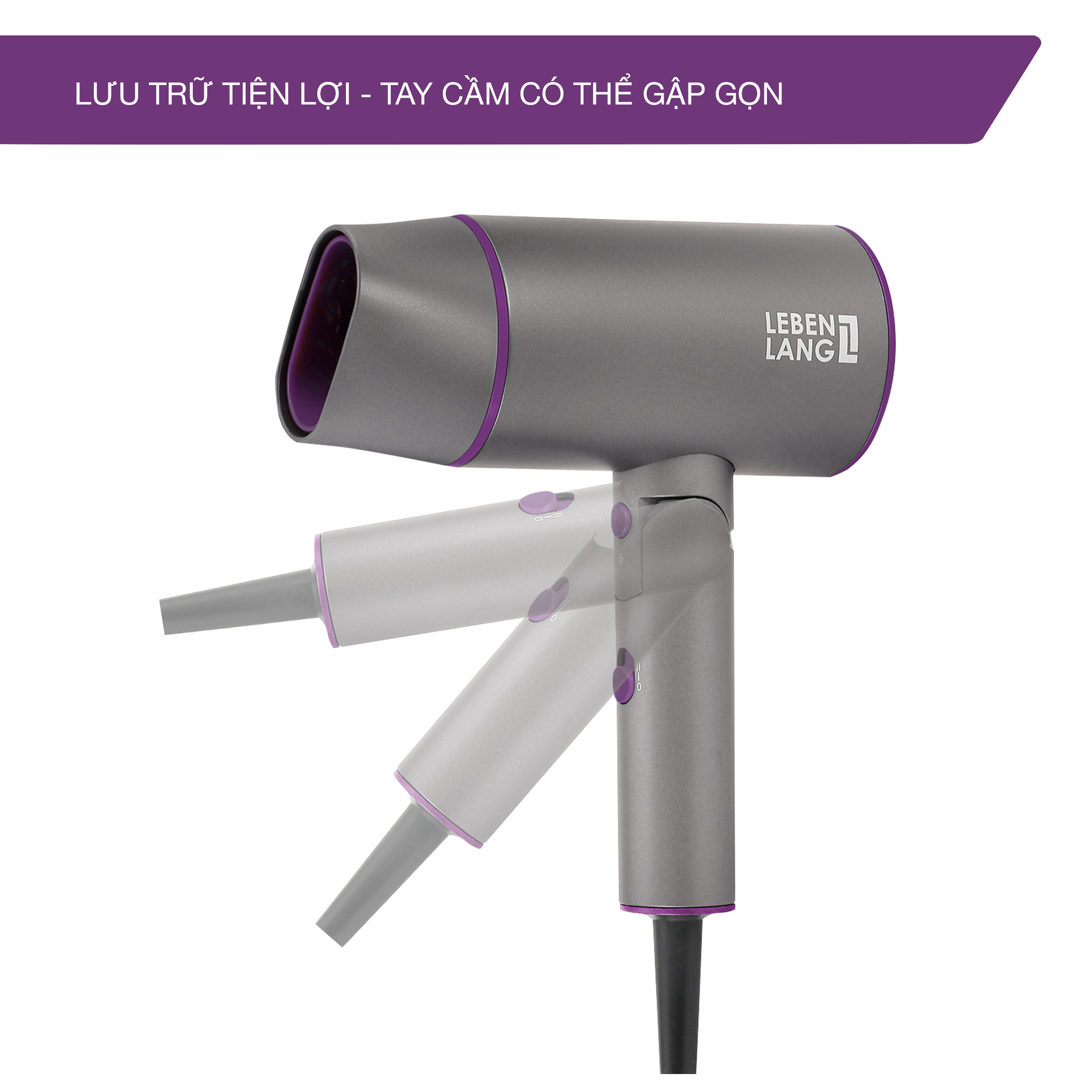 Máy sấy tóc Lebenlang 2 chiều nóng lạnh, gấp gọn tiện lợi, chống xơ rối tóc bằng công nghệ ion, 2100W