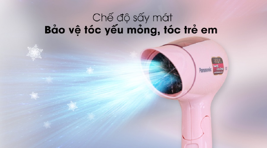 Máy sấy tóc Panasonic với thiết kế nhỏ gọn, dễ cầm nắm cùng công suất hoạt động mạnh mẽ 1800W giúp tóc nhanh khô, tiết kiệm thời gian sấy tóc Có 2 tốc độ