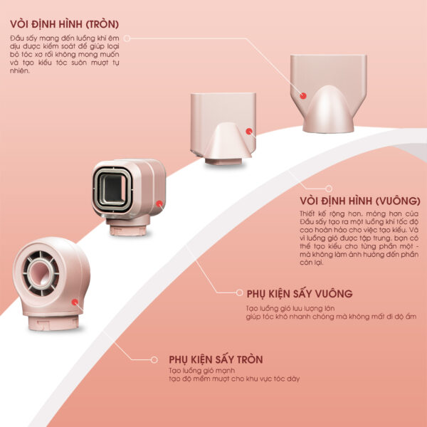 - Động cơ không chổi than tốc độ cao 110.000 vòng / phút, tạo ra sóng âm rung sâu khô nhanh tận chân tóc mà không tạo ra tiếng ồn cao