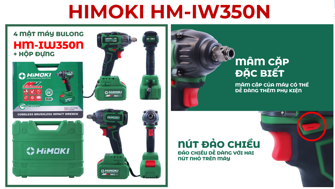 ✨Máy Siết Bulong Đa Năng HIMOKI-HM-IW350N 21V - Motor Ruột Đồng 100% - Động Cơ Không Chổi Than Siêu Mạnh Mẽ