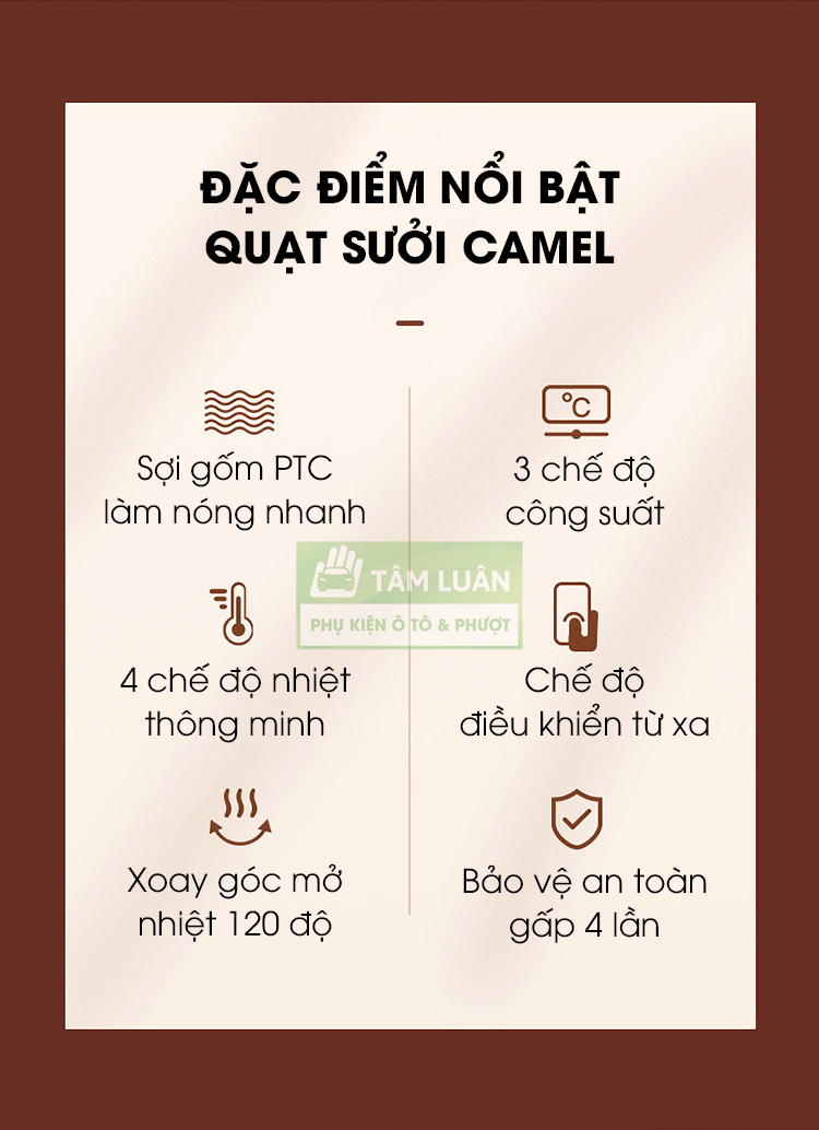 Mua tại TiktokMáy sưởi gốm Camel là sản phẩm thuộc top đầu thương hiệu về dòng sản phẩm máy sưởi tại thị trường TQ. Đây là sản phẩm nội địa TQ được chúng tôi phân phối chính