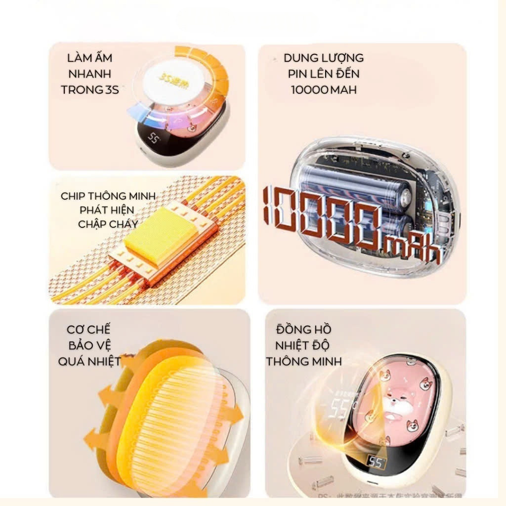 Máy sưởi ấm mini cầm tay 2 trong 1 - Vừa là máy sưởi tay, vừa là sạc dự phòng cực kì tiện lợi