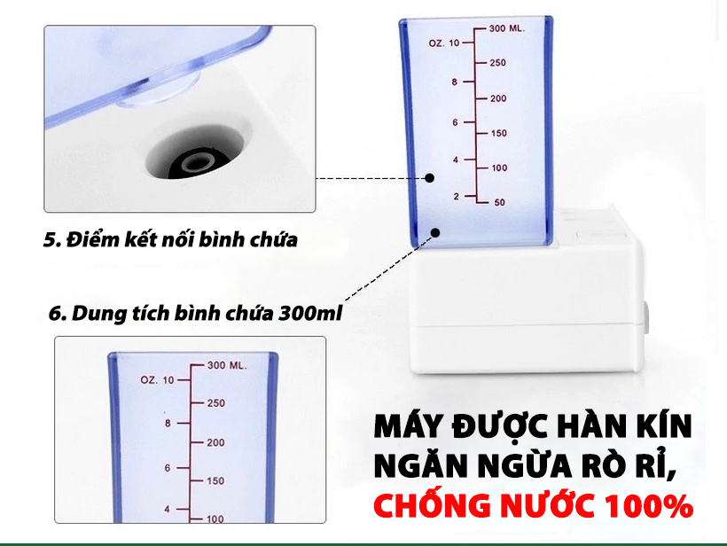 • Đầu chải lưỡi: làm sạch mảng bám trên lưỡi ngăn ngừa hôi miệng, cho hơi thở thơm mát. Đối tượng sử dụng: – Dùng vệ sinh răng miệng hằng ngày cho mọi người. – Dùng vệ sinh cho bệnh nhân viêm nướu, chỉnh nha, cấy ghép implant… Công dụng: – Giảm mảng bám, giữ cho răng sạch sẽ, kể cả những nơi khó chải nhất. – Massage nướu răng hỗ trợ lưu thông máu. – Đẩy bật mảng bám vi khuẩn nằm trong khe nướu, ngăn ngừa viêm nướu. – Trợ giúp làm sạch vùng nướu cho bệnh nhân viêm nha chu, viêm nướu. – Vệ sinh cho người đang niềng răng, có cầu răng giả, implant. THÔNG TIN SẢN PHẨM MÁY TĂM NƯỚC WATERJET CORDLESS NANO:   – Loại máy: Là loại máy dùng pin – Thương hiệu: Waterjet – Sản xuất tại: Trung Quốc – Áp lực nước: 40 To 110 PSI – Tần số đập nước: 1.400 lần/phút – Số mức áp lực nước: 3 – Số đầu tăm kèm theo máy: 5 – Nút ON/OFF trên tay cầm: Có – Đầu tăm có thể xoay 360 độ: Có – Dung tích bình chứa: 300ml – Cho thời gian sử dụng: 20 giờ – Sử dụng pin: 2000mA Ni-MH – Kích thước và trọng lượng: