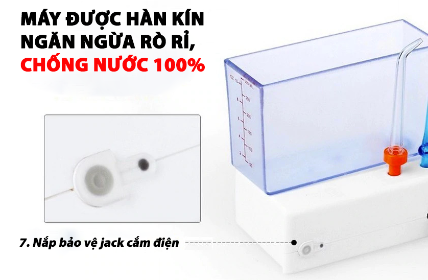 Máy tăm nước cá nhân không dây Waterjet Cordless Nano (5 đầu tăm, dùng được cho người niềng răng, có đầu cạo lưỡi) – Máy tăm nước du lịch không dây Waterjet Flosser Nano là thiết bị hoàn hảo để giữ cho nướu khỏe mạnh. Máy được thiết kế đặc biệt cho những người có nướu nhạy cảm (hay bị chảy máu), niềng răng chỉnh nha, cấy ghép, mão răng hoặc cầu răng, răng mọc lệch. – Đây là sự lựa chọn tốt nhất để vệ sinh răng miệng hiệu quả là biệt phát hỗ trợ cho việc đánh răng hàng ngày. Sử dụng máy để đảm bảo sức khỏe răng miệng của bạn và gia đình bạn. – 3 chế độ (làm sạch, massage, hơi thở thơm mát). – Chạy bằng pin sạc, điện áp chuẩn quốc tế. – Nhỏ gọn và tiện lợi, dễ dàng mang đi du lịch. Đi kèm túi du lịch cao cấp – Có thể điều chỉnh áp lực nước thoải mái (3 mức độ). Đảm bảo áp suất nước cao và xung mạnh. – Lực nước và độ rung mạnh giúp làm sạch tối ưu. – Bình chứa có dung tích 300ml, thiết kế dễ dàng thêm nước. – Bình chứa có thể đảo ngược lại làm nắp đậy và tiết kiệm diện tích đồng thời giữ vệ sinh sạch sẽ. – Hệ thống động cơ được hàn kín ngăn ngừa nước rò rỉ, đảm bảo an toàn khi sử dụng. – Có thể được sử dụng với nước, nước súc miệng hoặc chất kháng khuẩn. – Đầu bơm có thể xoay 360 độ. – Số đầu tăm kèm theo máy: 5 (2 đầu tiêu chuẩn, 1 đầu nội nha, 1 đầu chỉnh nha, 1 đầu chải lưỡi)