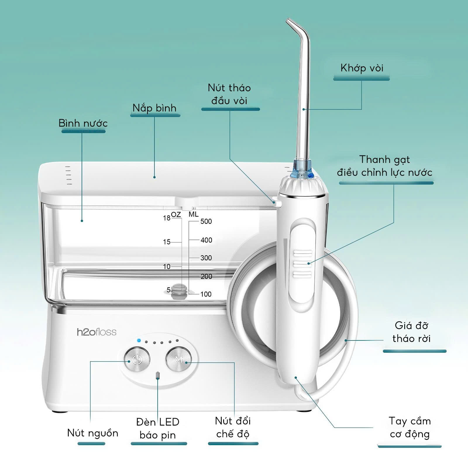 Mua tại Tiktok- Máy tăm nước sử dụng pin sạc thường có kích thước nhỏ gọn để có thể mang theo người dễ dàng khi ra ngoài. Nhưng bù lại thường có kích thước pin nhỏ, động cơ công suất nhỏ, và bình chứa nước nhỏ Máy gia đình cắm điện có công suất lớn hơn, bình chứa nước lớn hơn và động cơ cũng mạnh mẽ hơn. Nhưng bù lại kích thước rất to, rất khó khăn khi mang ra khỏi nhà Máy tăm nước hoàn toàn mới h2ofloss hf3 ra mắt để có thể giải quyết tất cả các vấn đề của máy sử dụng pin sạc hoặc cắm điện , và mang lại 1 giải pháp trung hoà giữa 2 dòng máy : mạnh mẽ, chứa nhiều nước, nhưng vẫn nhỏ gọn, dễ dàng mang theo. Đây là phiên bản mới nhất sử dụng cổng sạc USB Type C trong bộ sưu tập mới nhất của hãng, thay thế dần cho dây sạc độc quyền cũ Thông Số Kỹ Thuật h2ofloss hf3 -Bình nước 424 ml, cho thời gian sử dụng lên tới 1 phút, có thể đủ dùng cho hầu hết mọi người, và đủ dùng cho 2 3 người trong hầu hết trường hợp chỉ với 1 lần bơm nước -Pin 2500 mAh sạc nhanh 4 tiếng sử dụng lên tới 4 tuần với cổng sạc USB Type C đời mới nhất -Đèn LED báo tình trạng pin, đèn đỏ báo hết pin, đèn xanh chớp đang sạc, đèn xanh báo đầy pin -Dây sạc USB có thể dùng chung với các đầu sạc thông dụng, bin dự phòng , máy tính. -Áp lực nước : 20- 125 PSI với 6 chế độ phù hợp với tất cả mọi người. Lần đầu sử dụng nên sử dụng ở áp lực yếu sau đó tăng dần theo nhu cầu