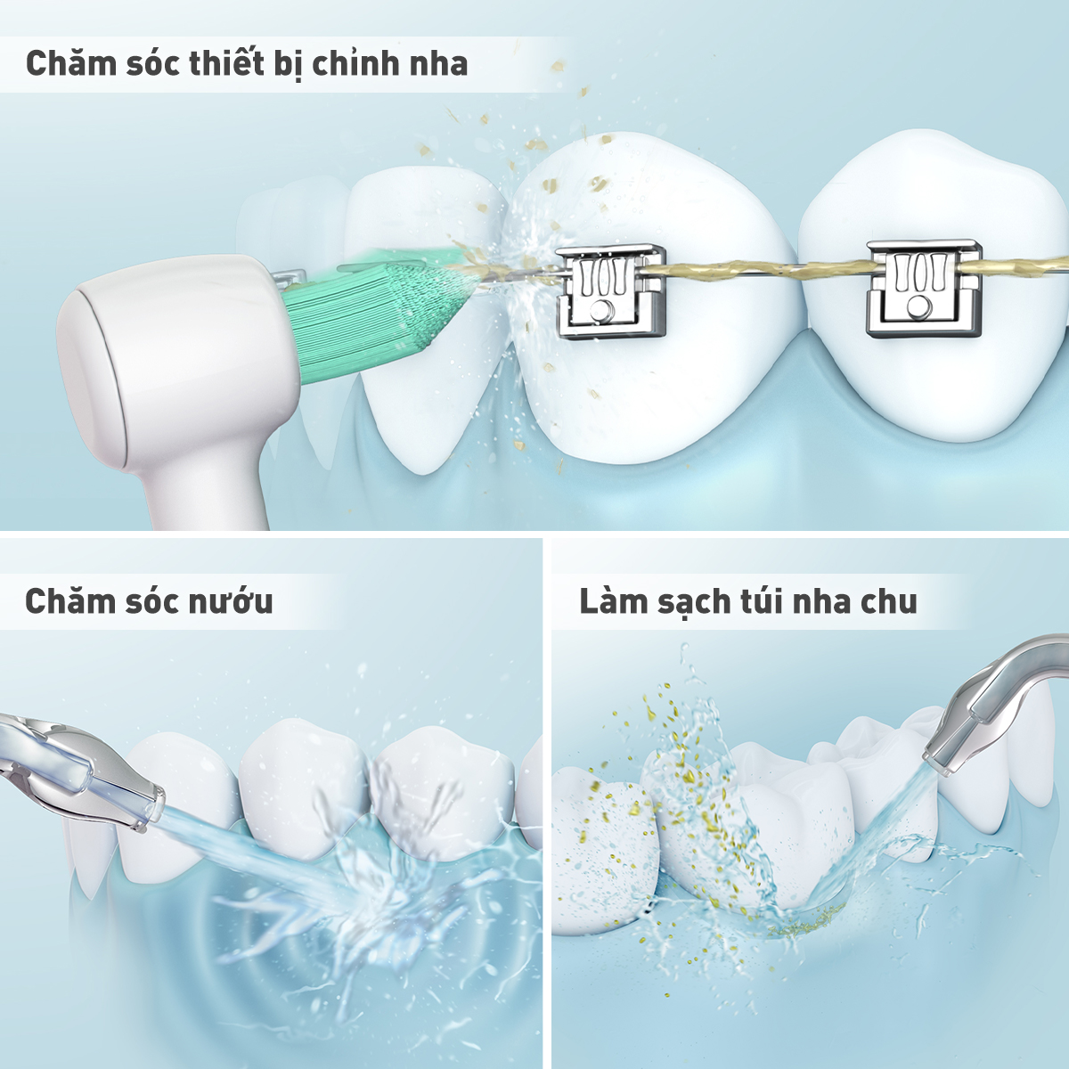 Máy tăm nước cá nhân WaterJet Flosser Slim (4 đầu tăm, dùng được cho người niềng răng, có đầu cạo lưỡi) - Để có thể làm sạch các mảng bám trên răng một cách đúng