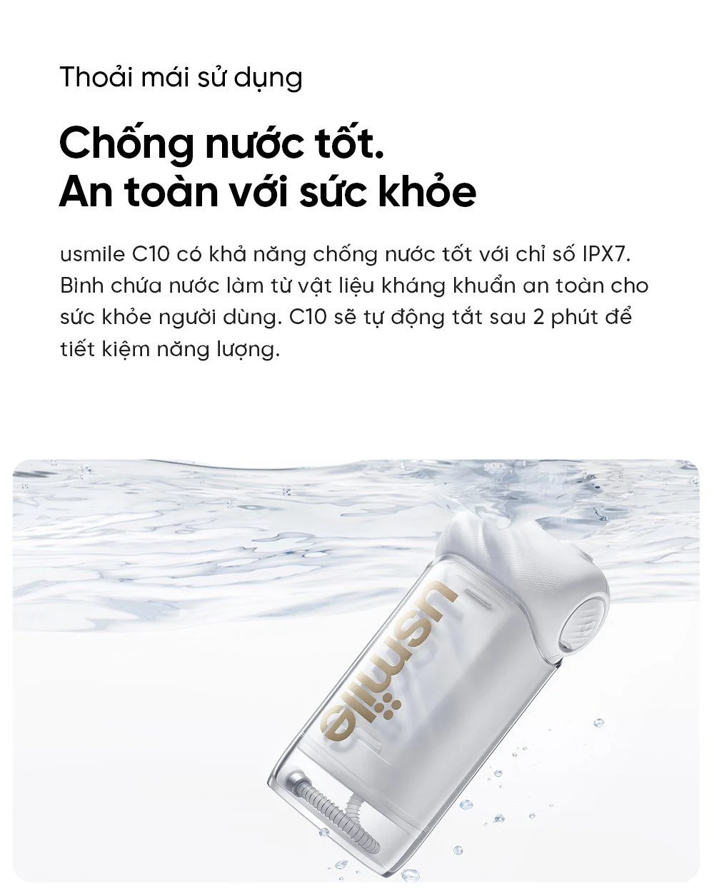 Với usmile C10, bạn không chỉ có được sự sạch sẽ và sức khỏe cho răng miệng mà còn trải nghiệm sự tiện lợi và thoải mái từ việc chăm sóc răng miệng hàng ngày.