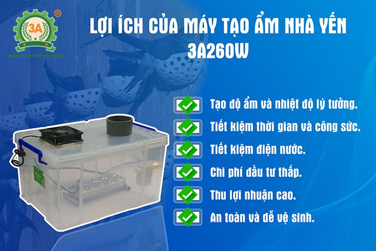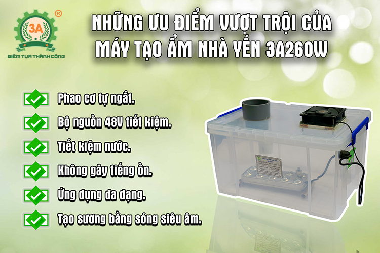 Máy tạo ẩm nhà yến 3A260W có nhiều ưu điểm nổi bật hơn các sản phẩm cùng tính năng trên thị trường như: