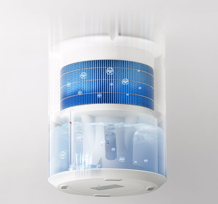 Không chỉ dừng lại ở đó, thiết bị còn tích hợp mô đun ion bạc ngâm trong bể nước, mang đến sự kháng khuẩn mạnh mẽ. Điều này giúp ức chế và giảm thiểu sự phát triển của vi khuẩn, đảm bảo không khí trong không gian sống luôn trong trạng thái sạch sẽ và tươi mát.