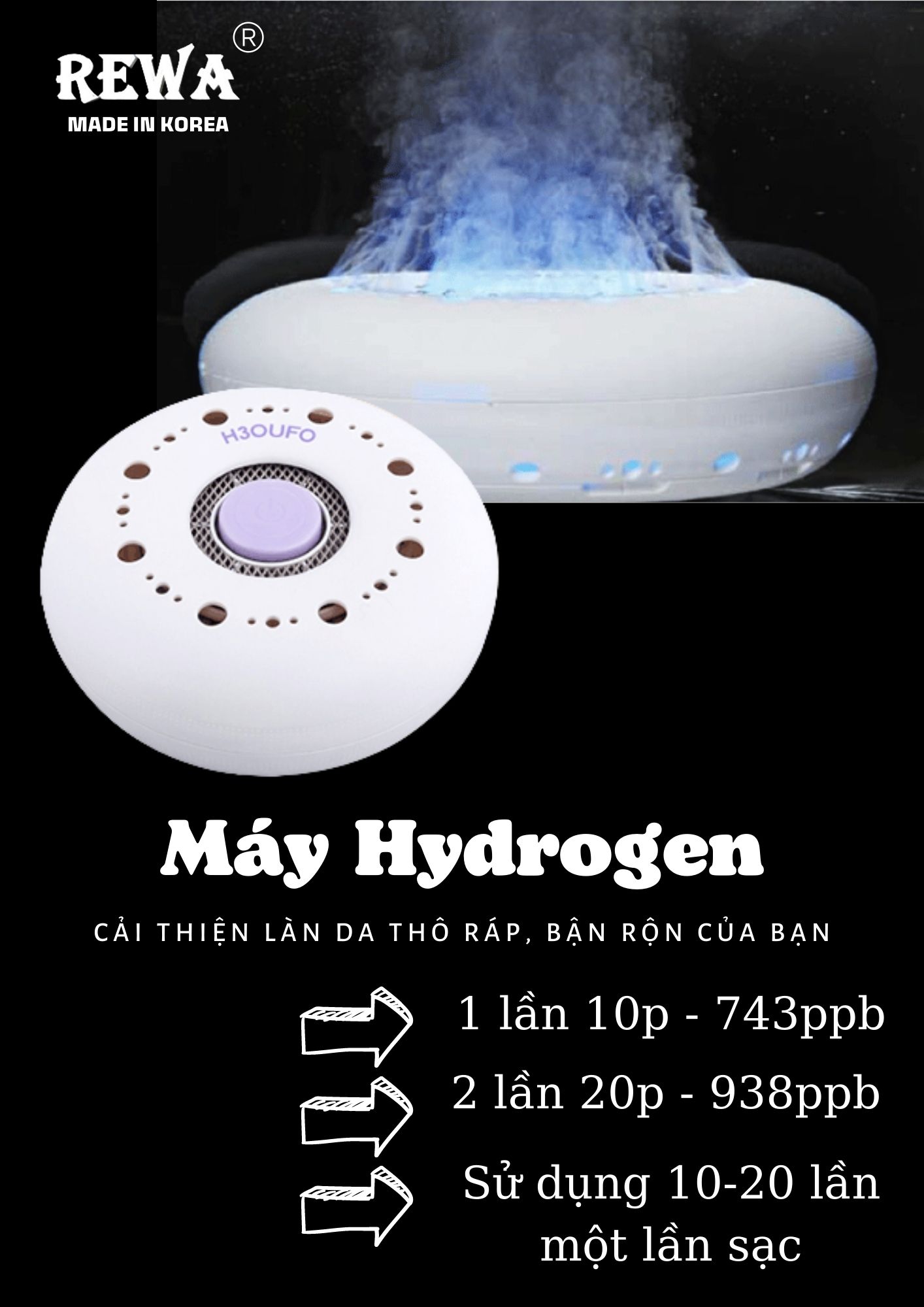 Máy tạo Hydrogen H3OUFO rửa mặt,tắm đẹp da.Hàng Nhật mới 100%,Giá 1.5 triệu.Hotline Zalo 0928338688
