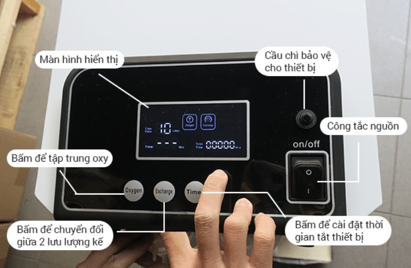 Nồng độ oxy luôn đạt >93% ngay cả ở lưu lượng cao nhất